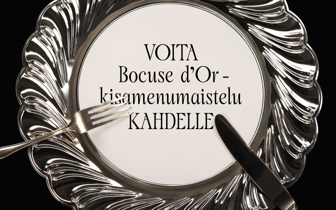 Arvonnassa on jaossa 2 x 2 paikkaa eksklusiiviseen ruokaelämykseen, joka järjestetään 5.3. Helsingissä. Voittajat pääsevät maistelemaan Suomen Bocuse d’Or -edustajan Johan Kurkelan ja hänen tiiminsä luomaa kilpailumenua juuri ennen Bocuse d’Or Europe -karsintakilpailuja Marseillessa.